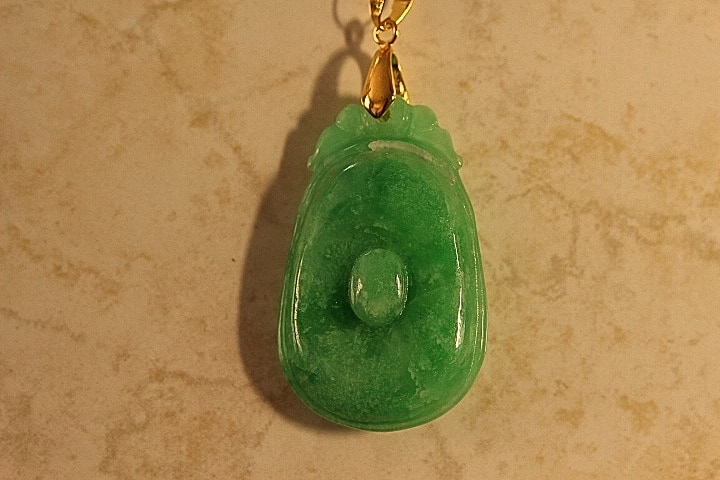 Fine Quality Hand Carved Jade Chinese Love and Happiness Pendant. This hand carved pendant is carved with great detail by a 4th generation Master Jade Carver. This pendant has the Chinese hand carved symbol for Love and Happiness carved onto the Jade pendant, and according to Chinese culture wearing this pendant will bring Love and Happiness through life to the wearer. The color of the pendant is gorgeous and most popular Deep Apple Green Jade. The color and clarity are excellent. The translucent quality is also excellent.