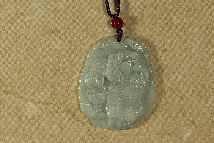 This Pendant is an excellently hand carved Chinese Dragon Pendant with three Chinese Lucky Coins, that according to Chinese culture will bring you luck and fortune. The Dragon is one the most important symbols of the Chinese Zodiac. The Chinese Dragon symbolizes Strength, Loyalty, Longevity and Prosperity, according to Chinese culture. The Jade color of this pendant is gorgeous and popular Apple Green Jade. The Pendant is intricately detailed and has been hand carved by a well-known fourth generation Chinese Master Jade Carver. The quality, clarity and color of the Jade is excellent. The translucent quality is very Good. This Pendant is on a Chinese silk cord adjustable from 14 inches to 20 inches