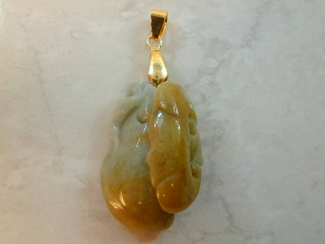 Very Fine Quality Jade Chinese Melon with Badger Pendant. This pendant is an excellently carved Chinese Melon with a Badger. The Chinese Melon symbolizes longevity, abundance for the year, and good fortune, and the badger symbolizes strong will, determination, confidence and eagerness according to Chinese culture. The pendant is very detailed and has been hand carved by a well known Chinese Master Jade Carver. The colors are light Lavender Jade and Russet The color and clarity of this Jade piece is excellent. The translucent quality is also excellent.