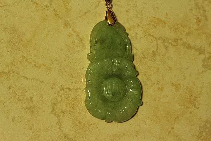 This pendant and is a hand carved Jade Chinese Lotus Flower. The Lotus Flower symbolizes purity, harmony and well being, and freedom of earthly cares according to Chinese culture. The pendant was hand carved with great detail by a fourth generation Chinese Master Jade Carver. The color of this Jade pendant is gorgeous and most popular Apple Green Jade. The quality, color and clarity of this Jade is excellent. The translucent quality of the Jade is also excellent.