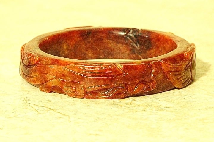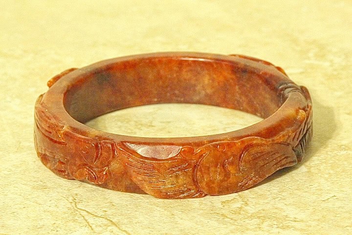 Very Fine Quality Chinese Dragon and Phoenix Russet Jade Bangle