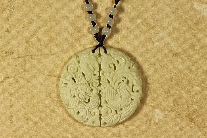 Fine Quality Jade Dragon and Phoenix Pendant