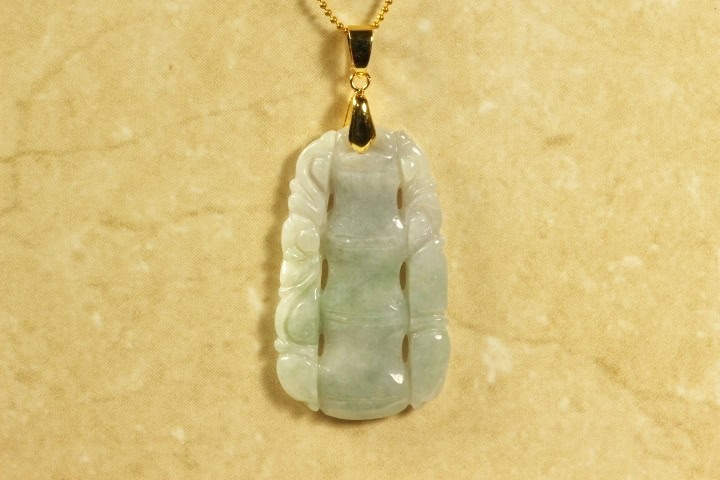 This is an excellently carved Jade Bamboo pendant. Bamboo is the most popular tree for strength to the Asian people. According to Chinese culture Bamboo symbolizes strength, prosperity, resilience, grace, and longevity. The color is classic Light Apple Green. The Pendant is very detailed and has been hand carved by a 4th generation Chinese Master Jade Carver. The color and clarity of this Jade piece is excellent. The translucent quality is also excellent.