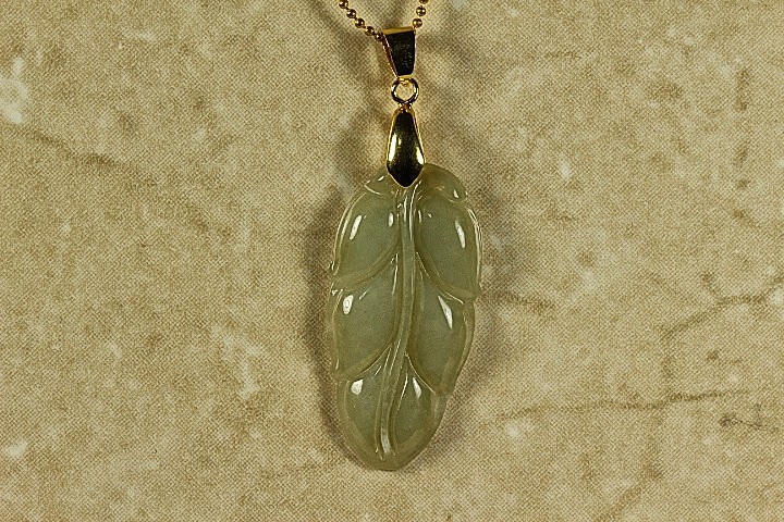 Fine Quality Hand Carved Jade Chinese Leaf. This pendant is carved with great detail by a 4th generation Master Jade Carver. This Pendant has the Chinese Leaf hand carved onto this pendant that symbolizes Purity, New Beginnings and personal Growth according to Chinese culture. This is an elegant piece of subtle beauty. The color of the pendant is gorgeous and most popular Apple Green Jade. The quality, color and clarity are excellent. The translucent quality is also excellent.