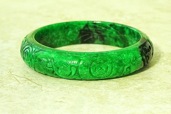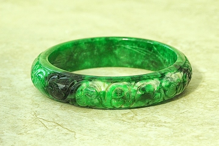 Fine Quality Jade Chinese Coins And Lotus Flower Bangle