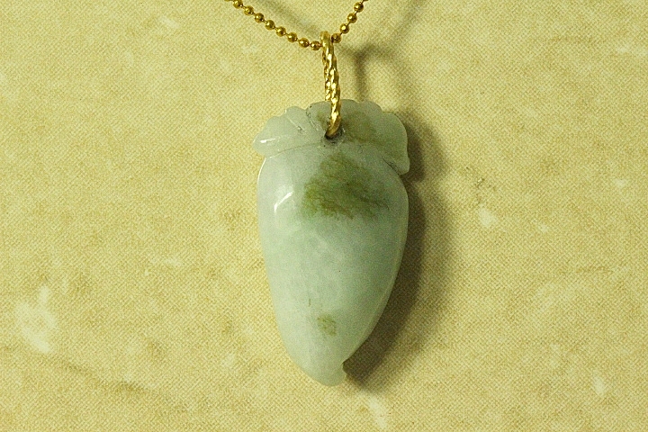 This pendant is an excellently hand carved Chinese Melon and Badger pendant. The Chinese Melon symbolizes abundance of wealth, happiness and longevity according to Chinese culture. This is why the Chinese melon are displayed in many Chinese homes. The Badger symbolizes determination, strong will and focus The color of this pendant is a gorgeous classic Light Apple Green with part of a vein of darker Apple Green Jade. This pendant is beautiful in it’s simplicity. It has been hand carved by a Chinese Master Jade Carver. The quality, color and clarity of this Jade piece is excellent. The translucent quality is also excellent.