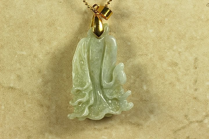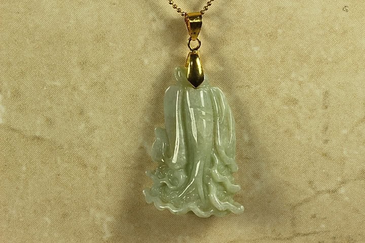 This Pendant is a three dimensional Chinese Cabbage that has been hand carved in great detail front and back. See the Gallery picture for the image of the back. According to Chinese culture the Chinese Cabbage symbolizes and brings wealth. The color of this pendant is a popular Light Apple Green. It is very detailed and has been hand carved by well known Chinese fourth generation Master Jade Carver. The color and clarity of this Jade piece are excellent. The translucent quality is also excellent.