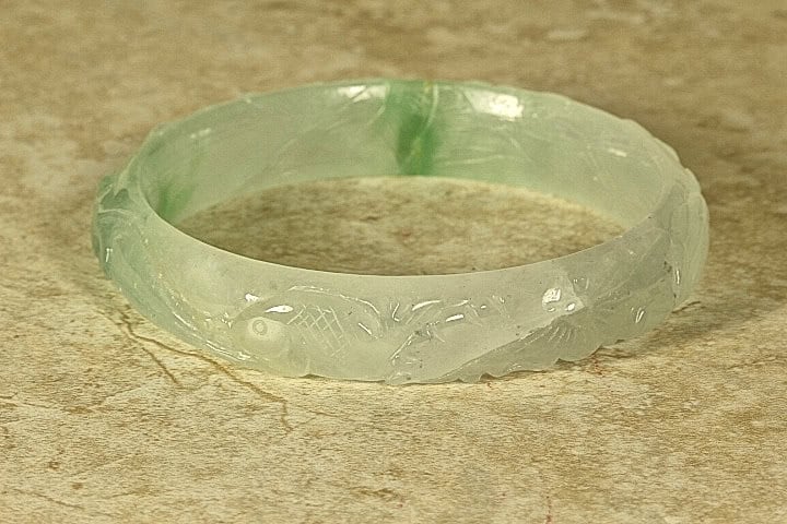 Fine Quality Jade Chinese Lucky Fish and Lotus Bangle