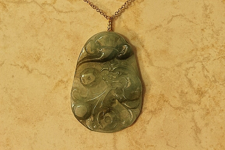 This Jade pendant was all hand carved with great detail of the Chinese Dragon with Chinese blessing for “Everything will all work out the way that you want”, there is also the Chinese coin carved onto the pendant that symbolizes wealth and prosperity. The Dragon is one the most important symbols of the Chinese Zodiac . The Chinese Dragon symbolizes strength, loyalty and longevity prosperity according to Chinese culture. The pendant is has been hand carved by a Fourth generation Chinese Master Jade Carver. The color of the Jade pendant is gorgeous Apple Green Jade, The quality, color and clarity of the Jade is excellent. The translucent quality is excellent.