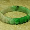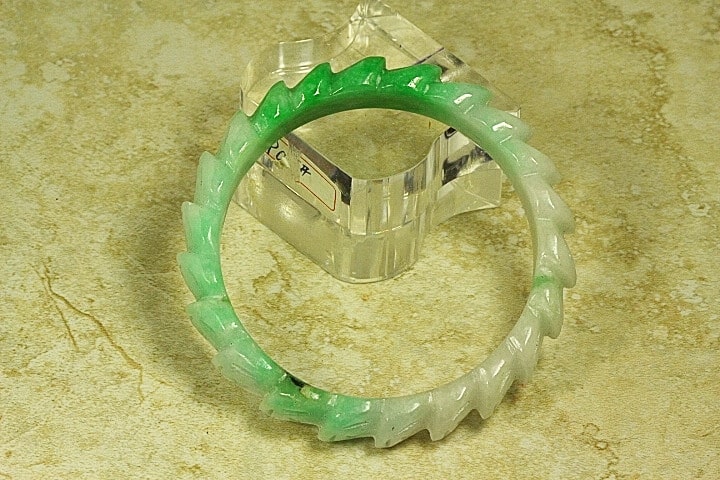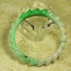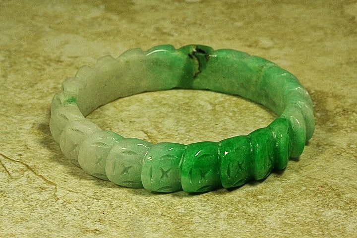 This is an excellently hand carved Jade Bangle with Chinese lucky coins carved completely around the bangle. The Chinese Lucky Coins symbolizes Good Fortune, Wealth, and Success according to Chinese culture. This Jade Bangle has been hand carved by a 4th generation Chinese Master Jade Carver. The colors of this is gorgeous Apple Green Jade with Light Apple Green Jade with a vein of Black Jade. The quality, color and clarity of the Jade is excellent. The translucent quality of this bangle is also excellent. It is flawless throughout (no chips, fractures or marks).