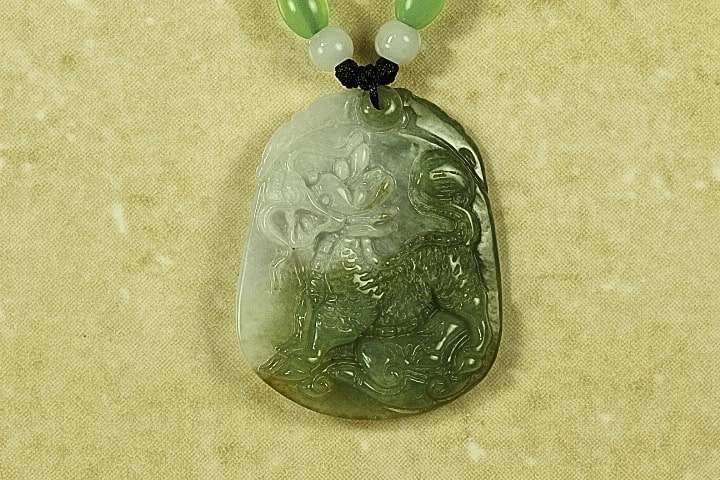 This is a beautifully hand carved Jade Pendant of the Four Legged Chinese Dragon. The Chinese Dragon is one of the signs of the Chinese Zodiac. The Chinese Dragon brings good luck and happiness and also symbolizes strength, loyalty and longevity according to Chinese culture. This Pendant has been hand carved in detail by a fourth generation master Jade carver with. The colors and very lite lavender of the pendant is gorgeous and most popular Apple Green and very lite lavender. The quality, clarity and color of this Jade pendant is excellent. The translucent quality is also excellent. This pendant is attached to a Chinese Silk cord that is adjustable from 14 inches to 22 inches and has three jade beads on both sides of the cord.