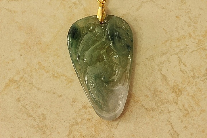 This pendant is an beautifully detailed hand carved Chinese pendant for happiness, harmony, and the Chinese blessings for “All things will work out the way you want and wish” according to Chinese culture. This is a very elegant piece. The pendant has been hand carved with great detail by a well-known 4th generation Chinese Master Jade Carver. The color of this Jade pendant is gorgeous and most popular Apple Green jade. The color and clarity of the Jade is excellent. The translucent quality is also excellent.
