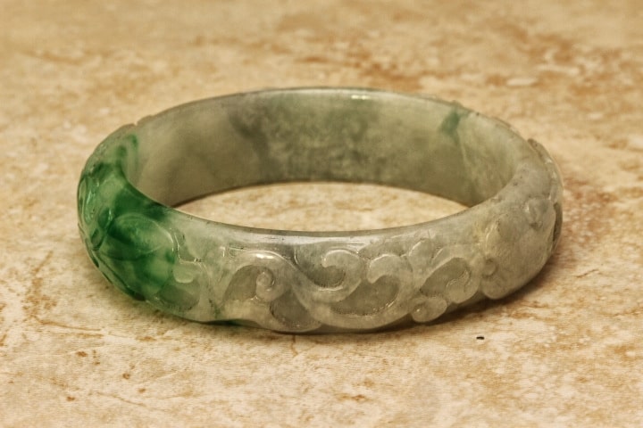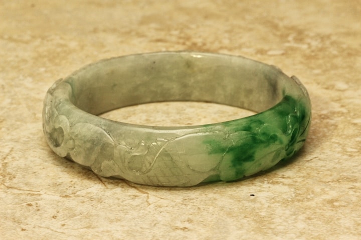 Fine Quality Jade Chinese Lucky Fish and Lotus Bangle