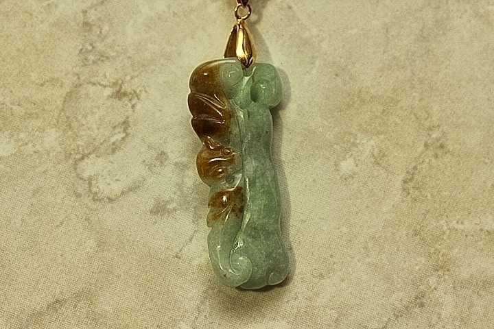 This pendant is a hand carved Bat on the Chinese symbol for “Everything will go as you want”. The Bat symbolizes prosperity, longevity and happiness according to Chinese culture. The color of the pendant is gorgeous and most popular Apple Green Jade with some Russet Jade down the side. This pendant was hand carved with by a fourth generation Chinese Master Jade Carver. The quality, color and clarity of this Jade pendant is excellent. The translucent quality is also excellent.