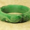 This bangle is an excellently hand carved pendant of the Badger with Chinese Blessings. The Badger symbolizes determination, strong will and focus according to Chinese culture. The Chinese Blessing hand carved onto this pendant is “Everything will work out the way you want them to work out” also according to Chinese culture. The color of this bangle is a gorgeous and most popular classic Apple Green Jade with a few veins of Black Jade running through. It is very detailed and has been hand carved by a fourth generation Chinese Master Jade Carver. The quality, color and clarity of this Jade is excellent. The translucent quality is also excellent.